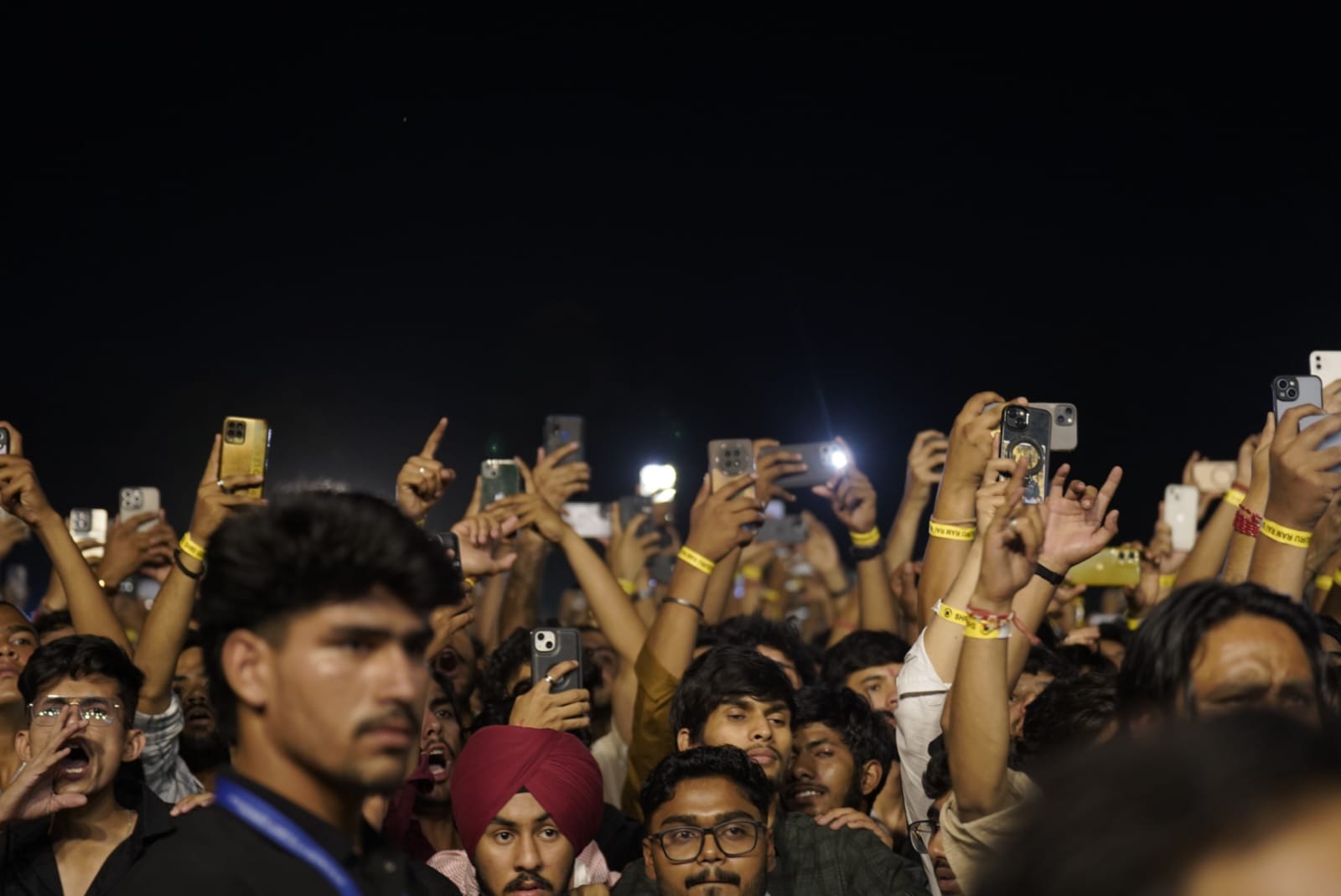 दर्शन रावल ने “रब्बा मेहर करीं” से शुरुआत कर “मेहरमा”, “तेरा जिक्र”, “कमरिया”, “ढोल बजा” जैसे हिट गीतों से दर्शकों को झूमने पर मजबूर कर दिया। हाई वोल्टेज बीट्स पर छात्रों का जोश देखने लायक था। मंच के सामने हजारों मोबाइल फ्लैशलाइट्स की रोशनी में विश्वविद्यालय का हेलीपैड ग्राउंड एक संगीत मंच में तब्दील हो गया।