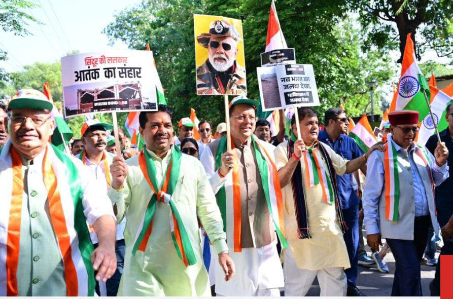 देहरादून। मुख्यमंत्री पुष्कर सिंह धामी के नेतृत्व में बुधवार को राजधानी देहरादून में “तिरंगा शौर्य सम्मान यात्रा” का ऐतिहासिक आयोजन किया गया। शौर्य स्थल चीड़बाग से गांधी पार्क तक निकाली गई इस भव्य पदयात्रा ने राष्ट्रभक्ति की भावना से वातावरण को गूंजा दिया। यह यात्रा भारतीय सशस्त्र बलों द्वारा हाल ही में संचालित “ऑपरेशन सिंदूर” की गौरवशाली सफलता को समर्पित रही।